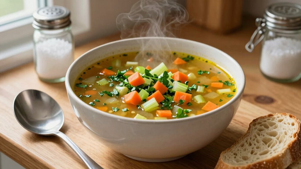 Think of your soup as a canvas and gluten-free grains like rice or quinoa as your vibrant colors. You can swap traditional ingredients with gluten-free grains and vegan protein options like lentils, chickpeas, or tofu to make it vegan and gluten-free. These substitutions not only keep the soup hearty but also guarantee it’s safe for various dietary needs. Feel free to mix and match for a nourishing, plant-based meal!