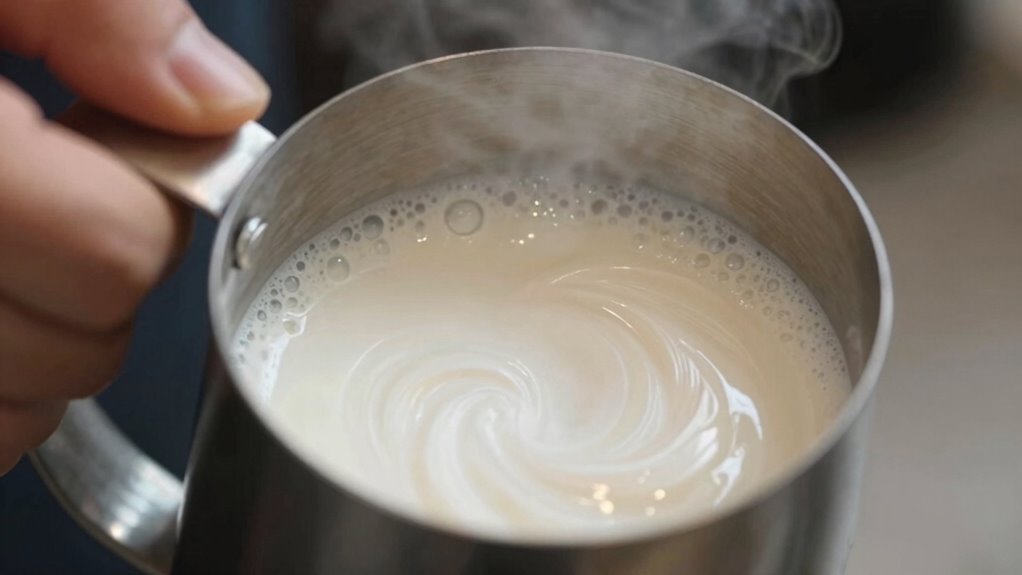 • Use a thermometer to monitor milk temperature, aiming for around 150°F (65°C).