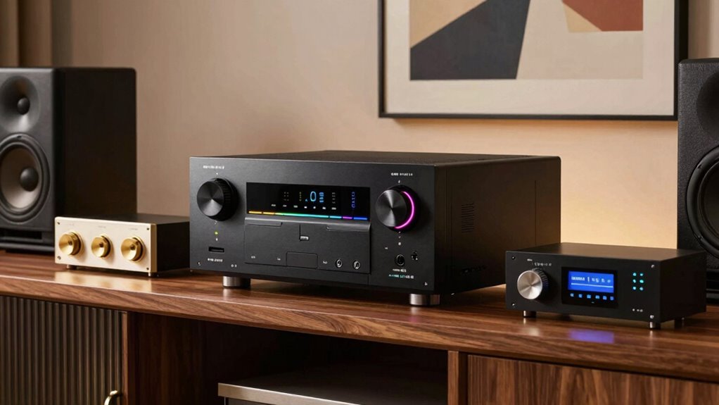 Premium AV receivers handle future 8K content updates through firmware updates and hardware compatibility. I find that manufacturers often release firmware patches that enable support for new standards like 8K, ensuring my receiver stays current. Additionally, high-end models typically include HDMI ports and processing power designed to handle 8K signals, so I can enjoy future content without needing to upgrade my entire system frequently.