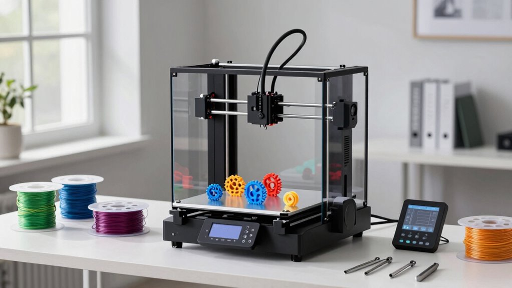 Choosing a filament 3D printer that’s easy to use can considerably streamline the process of producing functional parts, especially when precision and reliability matter. A filament that feeds smoothly with minimal tangling speeds up setup and reduces errors. Consistent filament diameter within ±0.02mm ensures smooth extrusion, resulting in high-quality, dependable prints. A clog-free formulation supports stable printing at various speeds, which is essential for functional parts that demand precision. Well-packaged, vacuum-sealed filament prevents moisture absorption, lowering the risk of bubbling and clogging. Additionally, filaments with full mechanical winding and quality checks make handling easier, whether you’re a beginner or a professional. Prioritizing these factors means less troubleshooting and more focus on perfecting your functional parts.