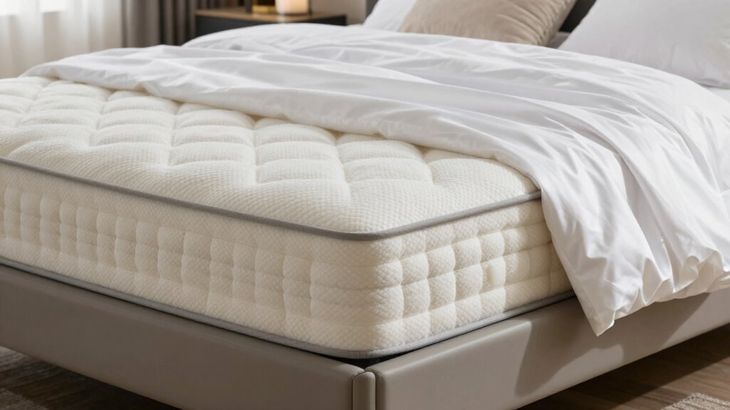 Choosing the right comfort layer is essential for side sleepers, as it directly impacts pressure relief and overall sleep quality. I look for high-quality, responsive materials like gel memory foam or soft polyfoam because they contour to my body’s curves and reduce pressure points on my shoulders and hips. A thicker comfort layer, around 2-4 inches, provides enough cushioning to prevent soreness and supports proper spinal alignment. I also prefer layers with cooling gels or breathable fabrics, which help airflow and keep me cool throughout the night. The softness or firmness should match my personal preference, generally leaning toward medium or medium-soft for a balanced mix of comfort and support. High-quality comfort layers truly enhance sleep by offering a plush, supportive feel tailored to side sleeping needs.