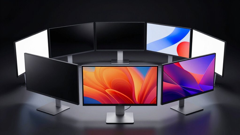 If you’re looking for the best monitors for your MacBook Pro in 2026, I recommend considering options like the Amazon Basics 27-inch FHD, Dell’s 4K USB-C, and INNOCN’s 4K display, which offer excellent color accuracy and versatility. Portable choices like the MNN and InnoView provide mobility without sacrificing quality. Each monitor supports macOS compatibility, HDR, and USB-C Power Delivery to keep your setup clean. Keep exploring further to find the perfect fit for your needs.