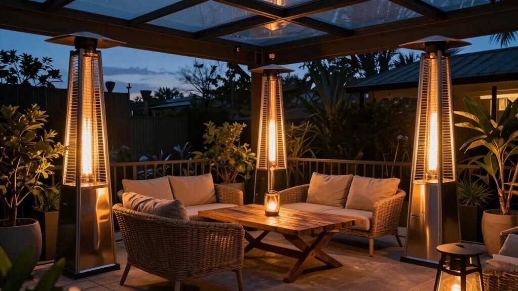 Think of choosing a patio heater like selecting a trusty lighthouse—guiding your outdoor evenings safely through the darkness. With the right features and power, your patio becomes a warm harbor amid chilly winds. So, pick one that shines bright in safety, style, and efficiency. With the perfect heater, your covered patio transforms into a cozy refuge, a haven where every evening feels like a gentle, welcoming glow—a true beacon of comfort.