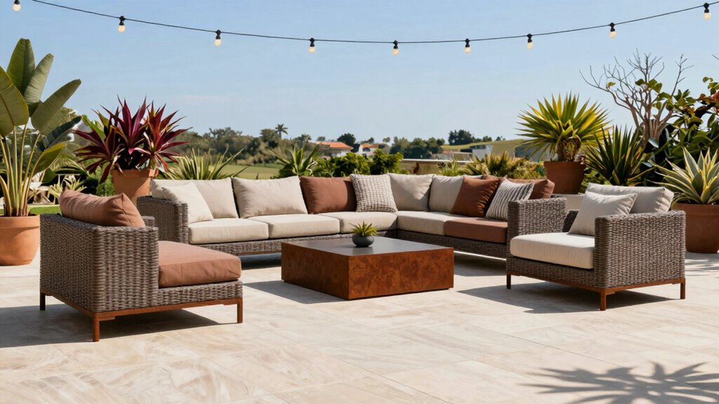 Imagine relaxing on your patio as the sun dips below the horizon, the gentle glow illuminating your weather-resistant sectional set. With the right choice, you’ll enjoy countless evenings of comfort and style, knowing your furniture can brave rain, sun, and snow. It’s not just about durability—it’s about creating a cozy haven that invites you to unwind and savor every moment outdoors. Invest wisely, and your patio will be a timeless retreat, no matter the season.