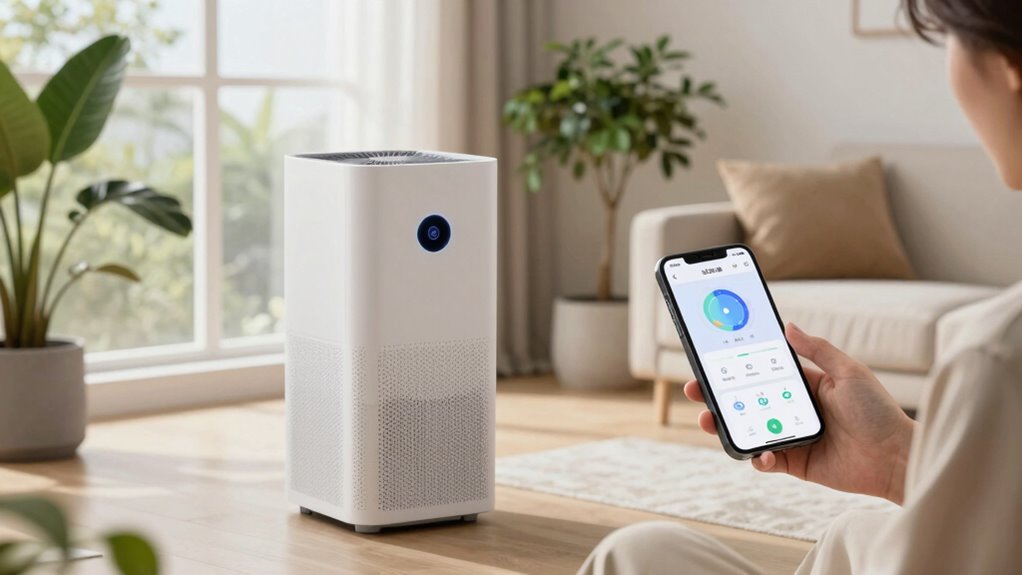 Smart app features have become a game-changer in managing air purifier performance and convenience. They let me control my purifier remotely, so I can adjust settings from anywhere with internet access. Many apps show real-time air quality data like PM2.5 levels and pollutant types, helping me stay informed. Scheduling options allow me to set purification times and modes that fit my daily routine, saving energy and ensuring clean air when I need it most. Compatibility with voice assistants like Alexa or Google Assistant means I can operate my purifier hands-free, adding extra convenience. Some apps also send maintenance alerts, such as filter replacement reminders, so I never forget to keep my device running at its best. These features make managing air quality effortless and more efficient.