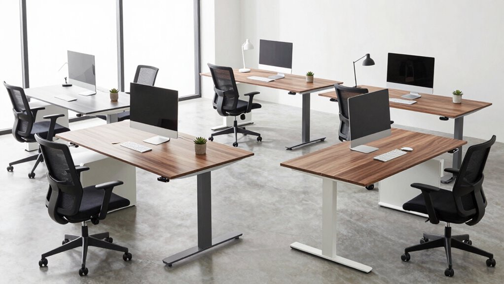 Motorized standing desks typically dance gracefully through years of daily use, often lasting around 7 to 10 years with proper care. Like a well-tuned instrument, they require occasional tune-ups—such as lubrication and cleaning—to keep performing at their best. The lifespan can vary depending on the quality and frequency of use, but with gentle handling, they tend to be reliable partners on your workday journey.