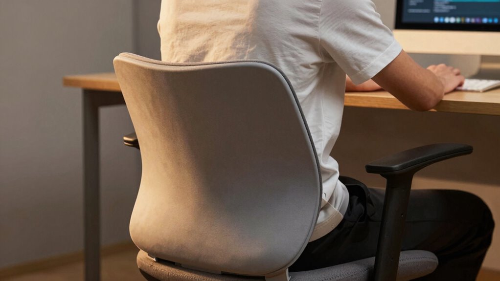 Lumbar support refers to the design or feature in chairs and cushions that helps maintain the natural curve of your lower back. An ergonomic design ensures your lumbar region is properly supported, preventing strain during long periods of sitting. When your lower back is well-supported, it promotes better spinal health, reducing the risk of discomfort and injury. Lumbar support aligns your spine correctly, encouraging a healthy posture and minimizing pressure on your vertebrae and discs. Without proper support, you’re more likely to develop poor posture habits that can lead to chronic back pain. Investing in lumbar support is a simple yet effective way to protect your back, especially if you spend hours sitting at a desk or driving. Proper ergonomic design also enhances comfort and can improve overall productivity during extended sitting sessions. It’s a key element in maintaining spinal health daily, and understanding posture correction can further enhance the benefits of lumbar support. Additionally, using supportive cushions can provide extra comfort and help maintain proper alignment throughout the day. Incorporating proper ergonomic principles can further optimize your back support and reduce strain over time.